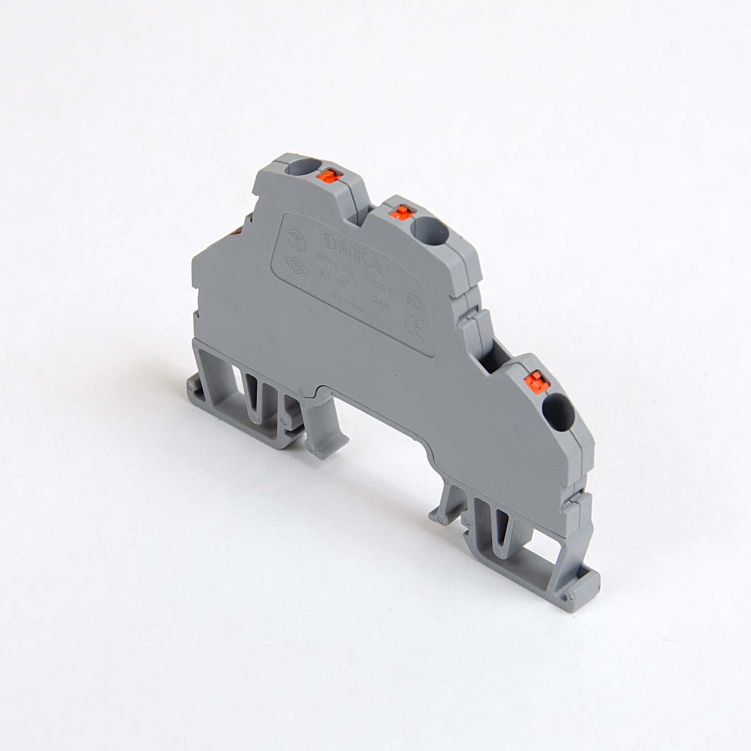 Дворівневі пружинні клеми ONKA працюють за принципом швидкої фіксації жил всередині корпусу, що суттєво скорочує час монтажу. Пружинний контакт забезпечує постійну притискувальну силу та оптимальний електричний контакт без ослаблення з часом, підходить для мідних та алюмінієвих провідників різного перерізу.